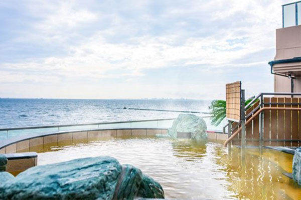 海のミネラルをたっぷりと含んだ塩化物泉の泉質が自慢で、和の雰囲気で木のぬくもりを感じる露天風呂が人気を集めています。